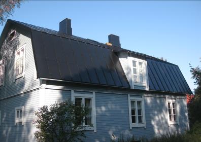 Talo maalaattiin perustuksista harjaan. Samalla tehtiin ulkovuori uusiksi ja maalattiin koko talo. Vanha peltikatto pinnoitettiin. Kate maalattu käsityönä panssarimaalilla. Projekti toteutettiin kesällä 2009. |